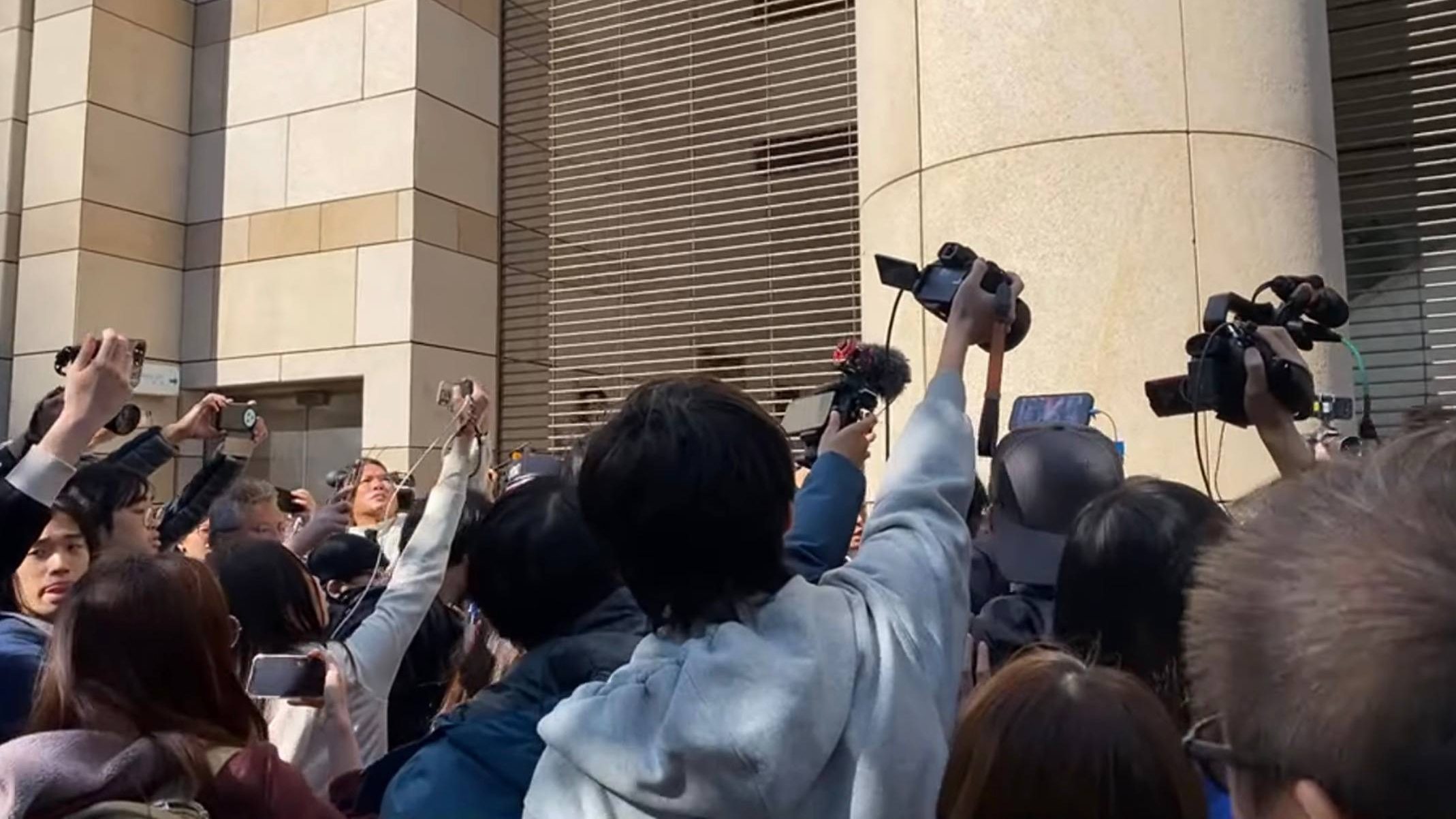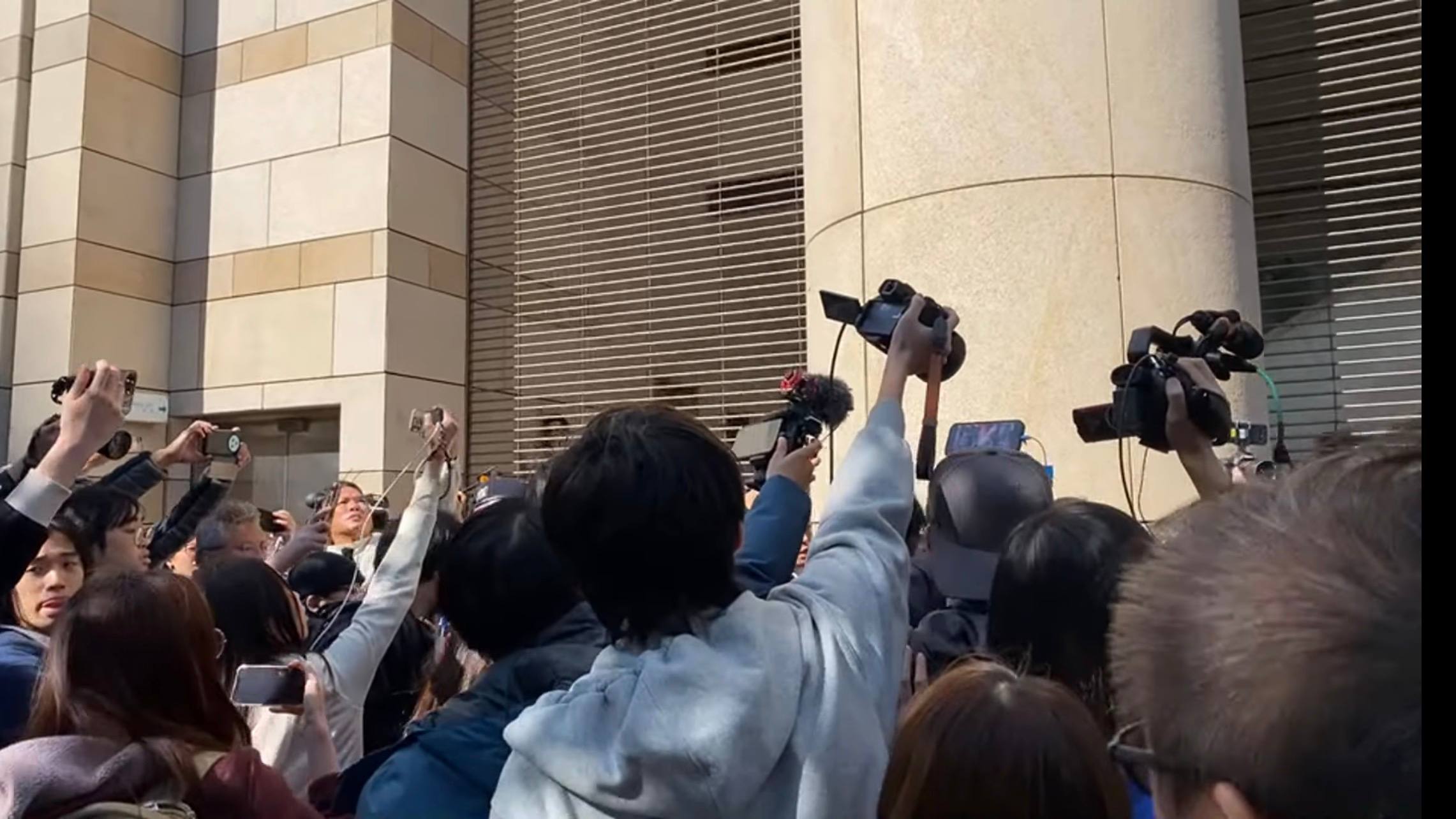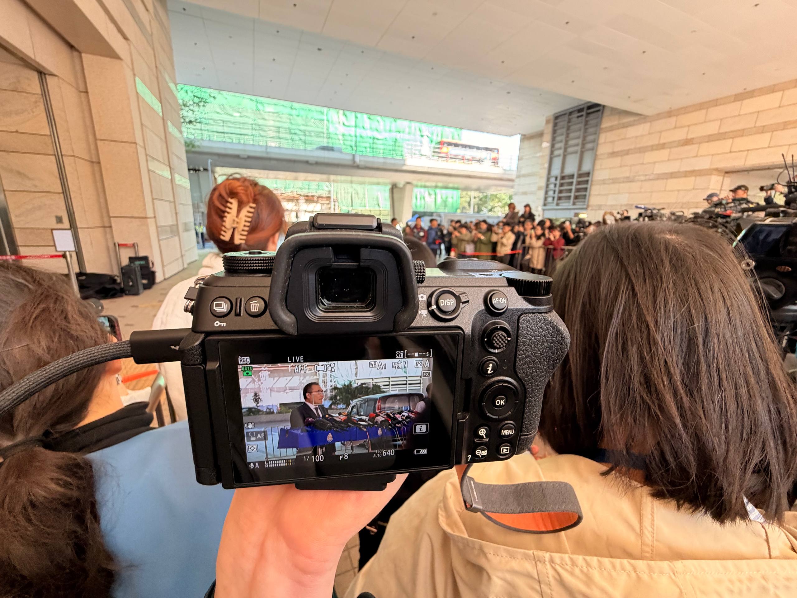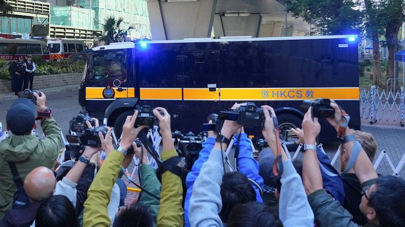 庭审结束后,作为记者,我继续跟进拍摄黎智英家人步出法院。随后,我与其他媒体一同前往法院后门,等待囚车驶出。