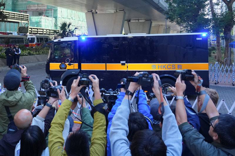 大约十五分钟后,随着摩托车发动、大门开启的声响,载着黎智英的囚车缓缓驶离法院大楼。那一刻,我百感交集。曾经香港最具象征意义的反对声音之一,就这样被制度带走,被关进一个不足两平方米的空间里。