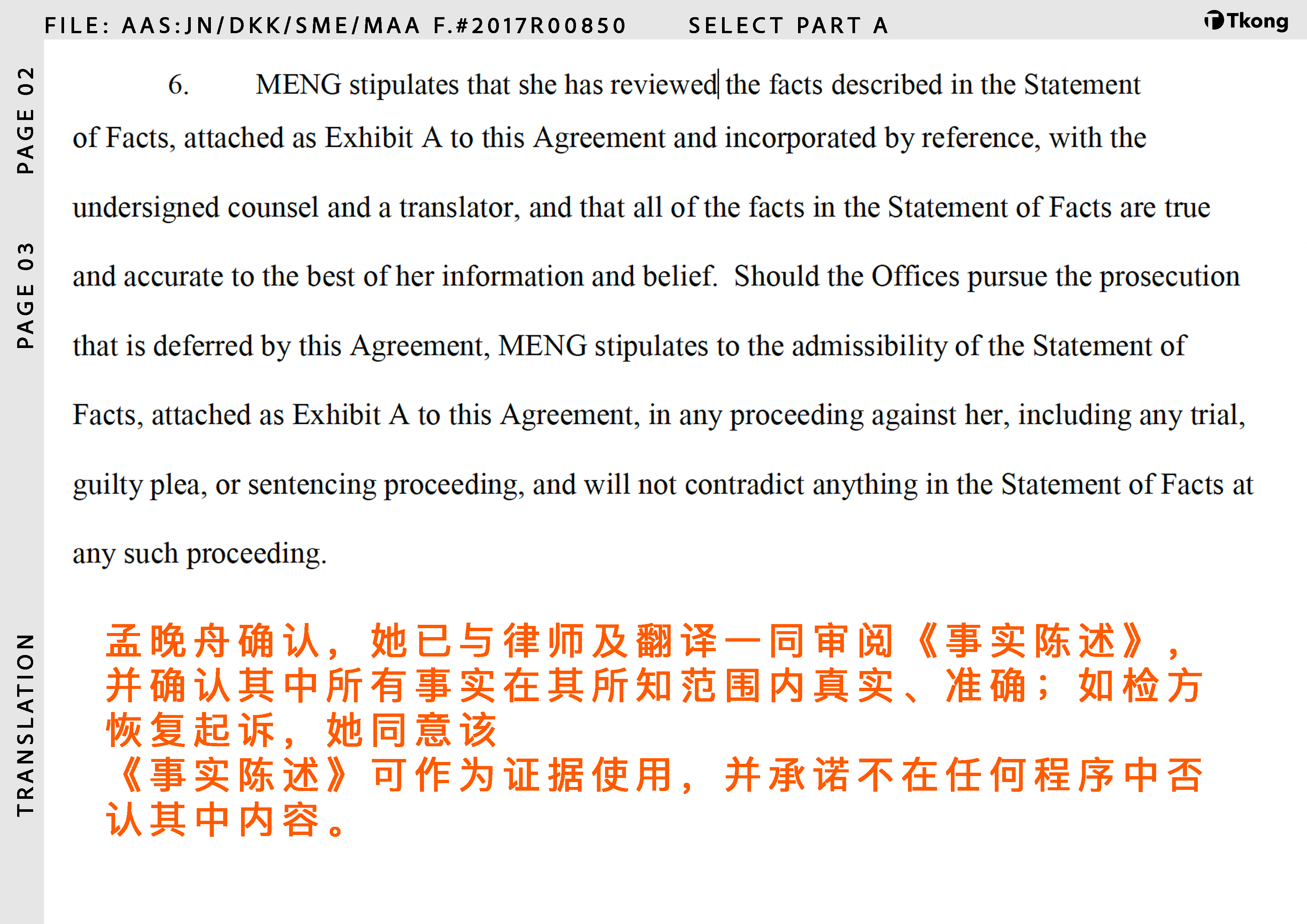 答案,已经写进了孟晚舟亲自签字认可的《事实陈述》(Statement of Facts)中。这也是本案最坚实的证据基石。
